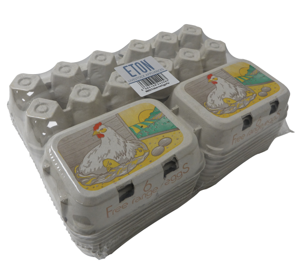 2 x 6 free range printed, white original - shrink packed, labeled and barcoded 20 X 1/2doz egg boxes